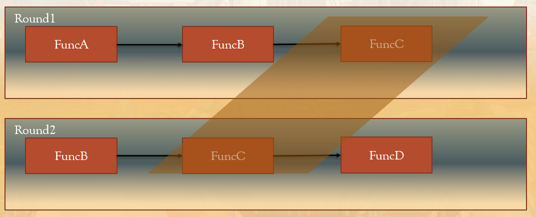 - Round1 由 FuncB 到 FuncC 的回溯与 Round2 由 FuncB 到 FuncC 的回溯是一样的